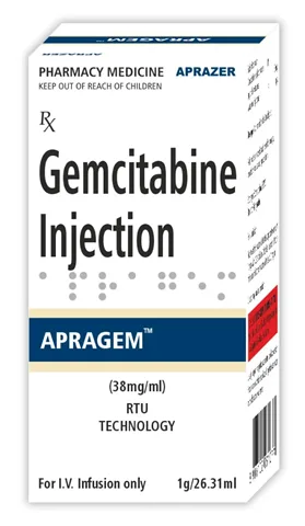 Apragem injection is gemcitabine injection, manufactured by Aprazer Healthcare.
